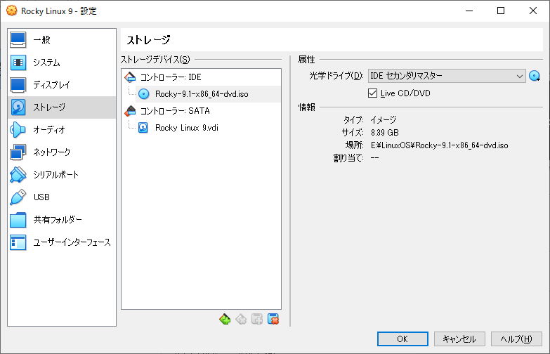 「 ストレージ - ストレージデバイスのコントローラ:IDE - 属性の光学ドライブ 」の