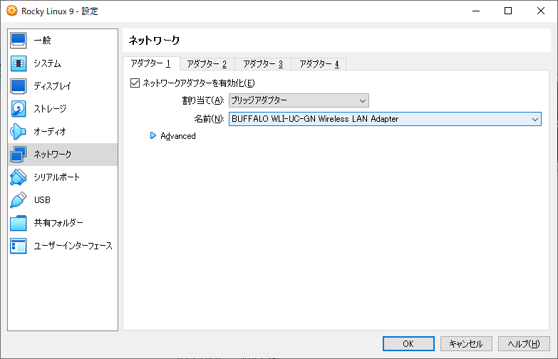割り当て(A)を「 ブリッジアダプター 」にします。