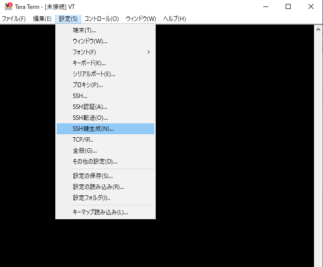 「 設定(S) 」をクリックし、その中の「 SSH 鍵の生成(N)... 」をクリックします。
