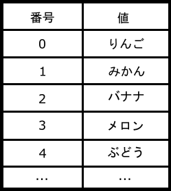 配列は、0から始まる数字で番号付けされた値のリストです。