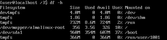 ディスクのサイズを調べるには、dfコマンドを使います。dfコマンドのオプションには、以下のものがあります。