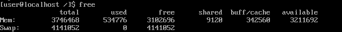 メモリ使用率を調べるには、「 free コマンド 」を使います。